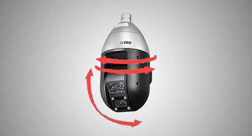 دوربین دارای قابلیت چرخش ۳۶۰ درجه پیوسته و حرکت عمودی از -۳۰ تا +۲۱۰ درجه است. سرعت حرکت در حالت پیشفرض تا ۳۰۰ درجه در ثانیه میرسد. همچنین، امکان تعریف ۲۵۶ موقعیت پیشفرض برای نظارت بر نقاط مختلف وجود دارد. قابلیتهای Auto Track و Auto Pan نیز برای دنبالکردن خودکار اهداف متحرک فراهم شده است.